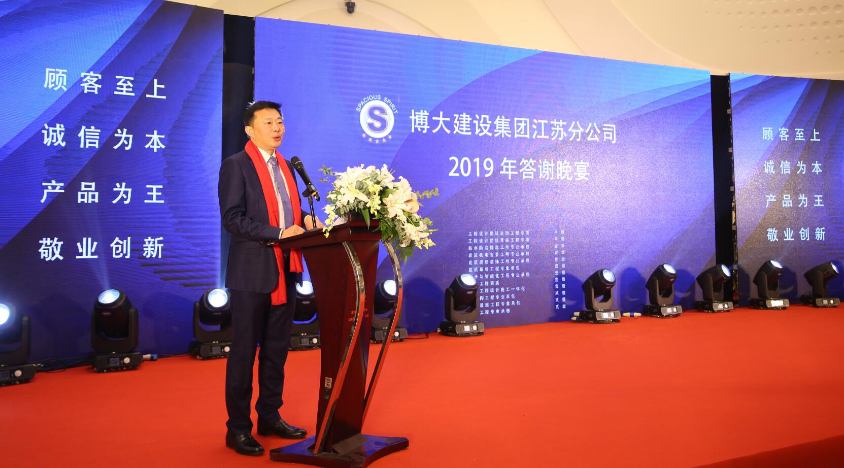 宴會上,董事長徐凱宏代表博大建設集團董事會宣布:任命謝方先生為集團董事、副總裁、江蘇分公司總經理。同時,向行業介紹了集團總部為江蘇分公司量身定制的五大“特權”政策,全力支持其拓展江蘇市場,期望江蘇分公司成為博大戰略改革的模范試驗區,實現集團與合伙人之間的共贏。