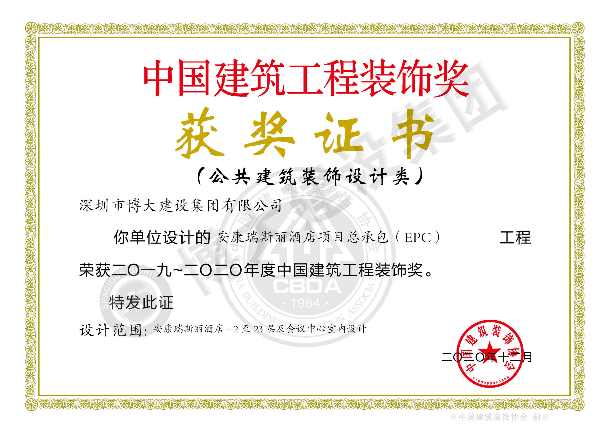 中國建筑工程裝飾獎(安康瑞斯麗酒店裝飾施工)