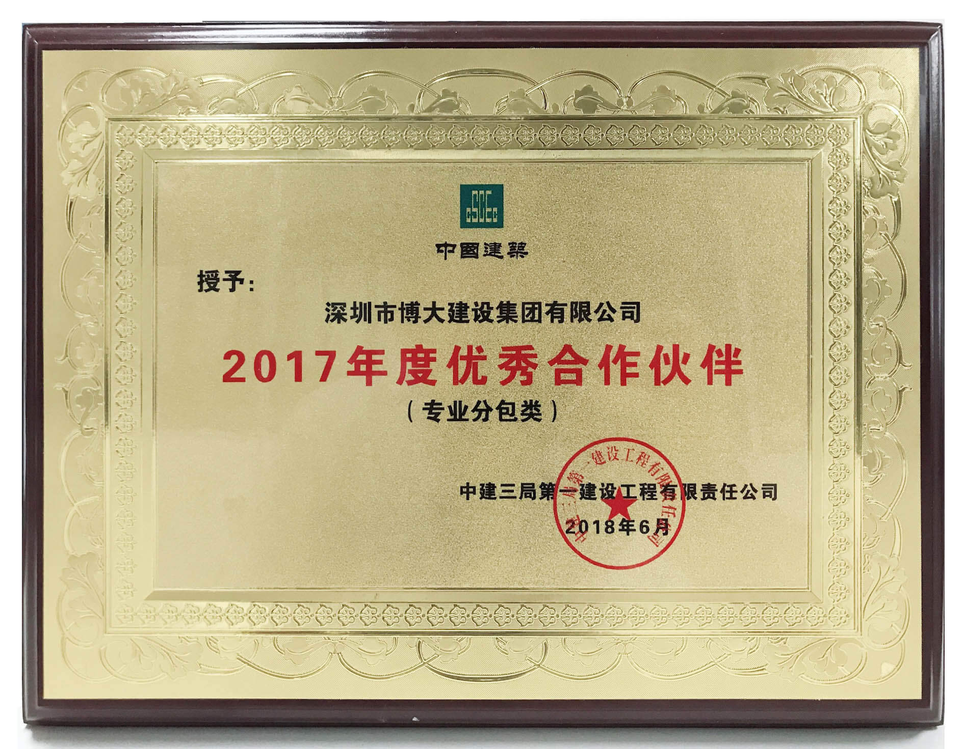 博大榮譽(yù) | 中建三局一公司2017年度優(yōu)秀合作伙伴